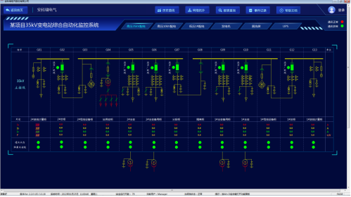 Acrel-1000變電站綜合自動化系統人機界面友好,能夠以配電一次圖的形式直觀顯示配電線路的運行狀態,實時監測各回路電壓、電流、功率、功率因數等電參數信息,動態監視各配電回路斷路器、隔離開關、地刀等合、分閘狀態及有關故障、告警等信號。其中,配電系統中監測的開關量主要有:斷路器分、合閘信號,手車工作、試驗位置信號,遠方/就地切換位置信號、彈簧儲能狀態信號、接地刀合分信號、變壓器超溫跳閘信號、高溫報警信號,保護跳閘信號和事故預告信